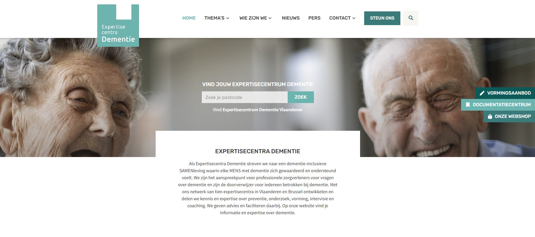 Op de website www.dementie.be ontwikkelen en delen we met ons netwerk van tien expertisecentra in Vlaanderen en Brussel kennis en expertise over preventie, onderzoek, vorming, intervisie en coaching. De Expertisecentra Dementie geven advies en faciliteren daarbij. Op onze website vind je informatie en expertise over dementie.